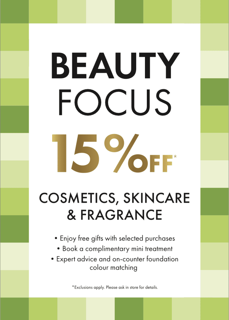 🎟️ Offer: 15% off cosmetics, skincare and fragrance (terms apply*)
