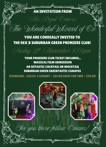 Step into the Emerald City for a truly magical evening at The Rex Wilmslow as they host the Premiere Club: Wizard of Oz Special in partnership with Suburban Green.