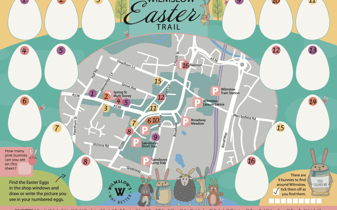 Follow the trail around town this Easter and enjoy a fun, family friendly way to explore Wilmslow, perfect for keeping the kids entertained while you browse, shop and stop for a treat.